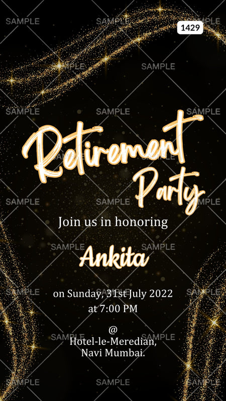 Retirement Party invitation card Canva Editable Template in english language with glittery theme design 1429