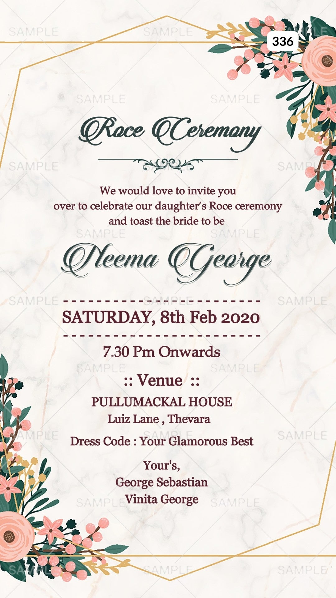 Roce ceremony invitation card Canva Editable Template in english language with flowers, frame as minimalistic theme design 336