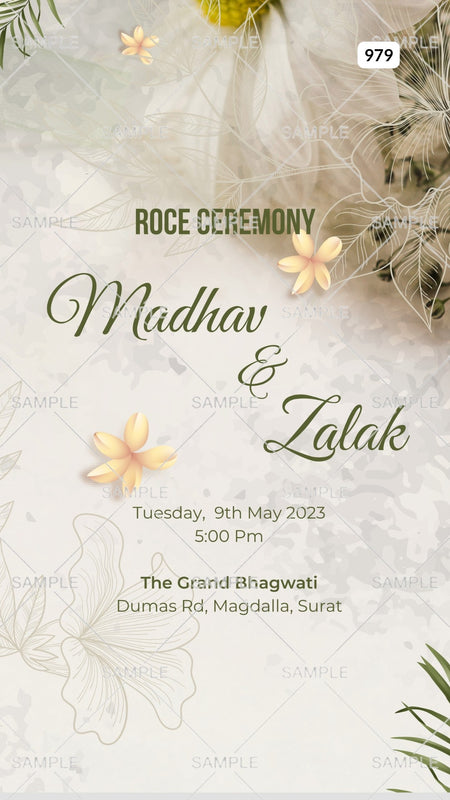 Roce ceremony invitation card Canva Editable Template in english language with flowers, leaves as artistic floral theme design 979