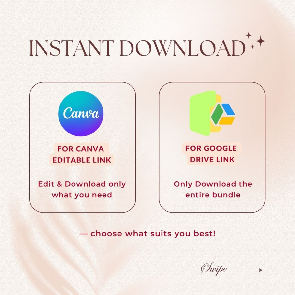 A PDF download with 2 instant access links: