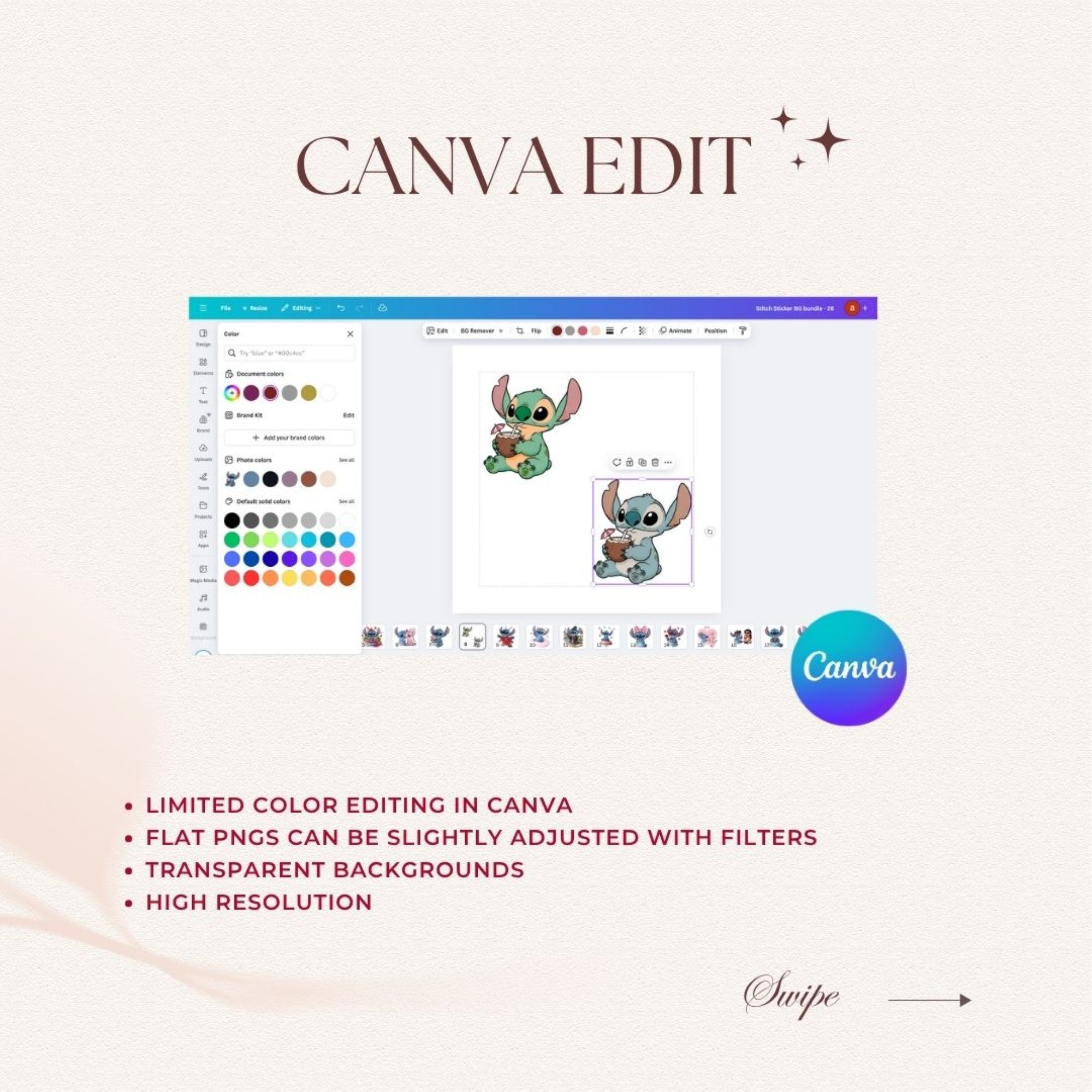 • Reselling or sharing the PNG files, Canva link, or Drive link