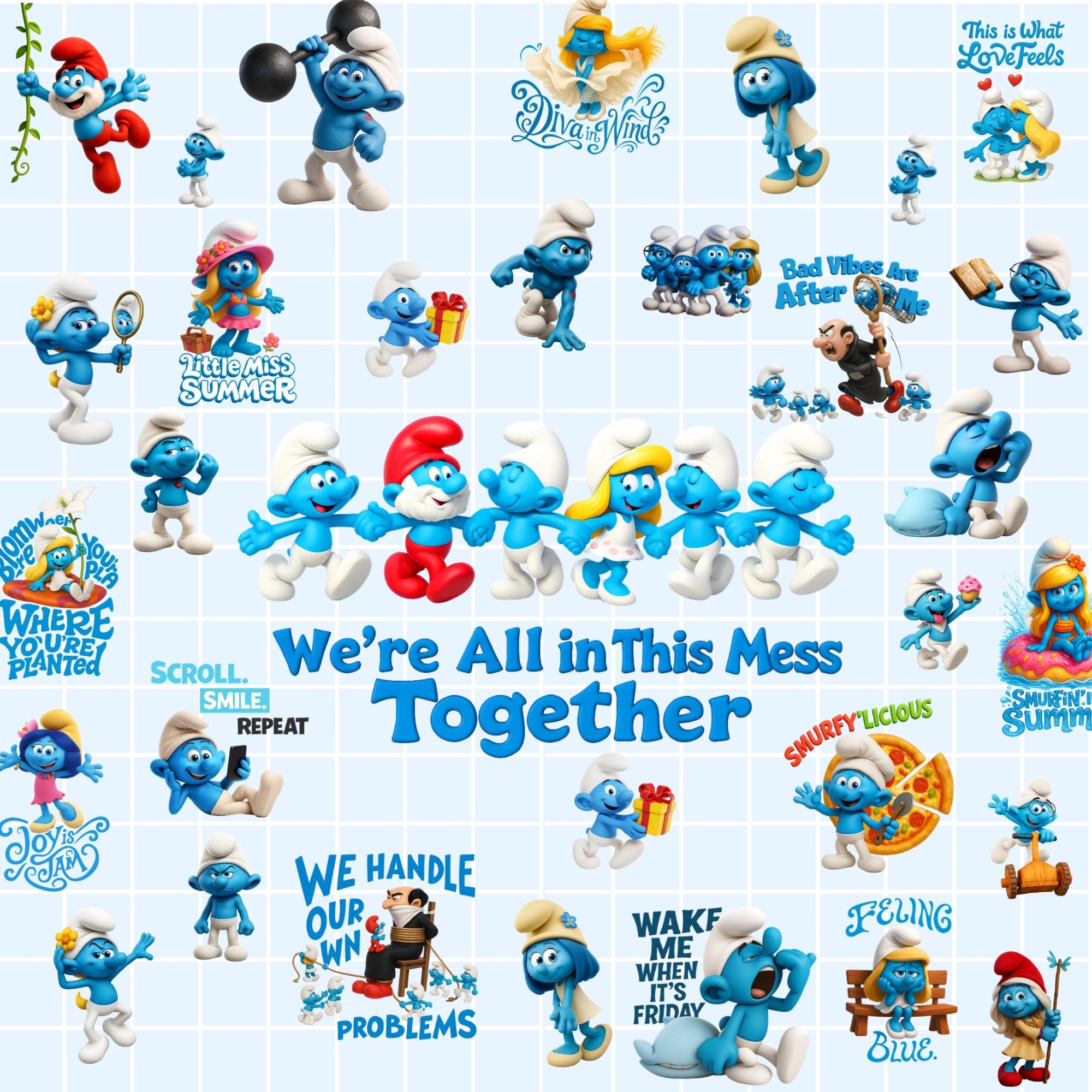 The Smurfs PNG Bundle | 32 Cute Cartoon Designs | We're All in This Mess Together | Instant Download - C39