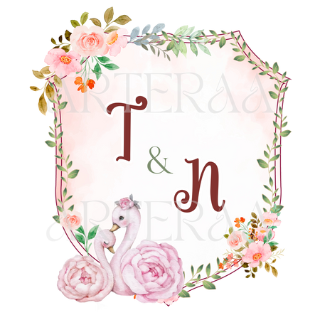 Floral Swan Monogram – Gentle pastel pinks, floral frame, and a pair of swans for an elegant romantic vibe.