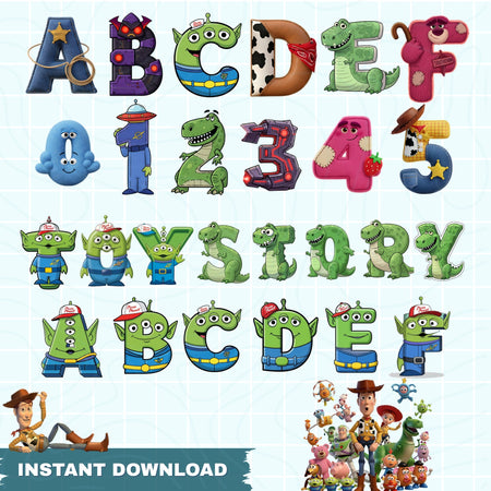 Toy Story Alphabet & Numbers PNG | 100+ Sublimation Designs | Woody & Buzz Font | Instant Download - C64