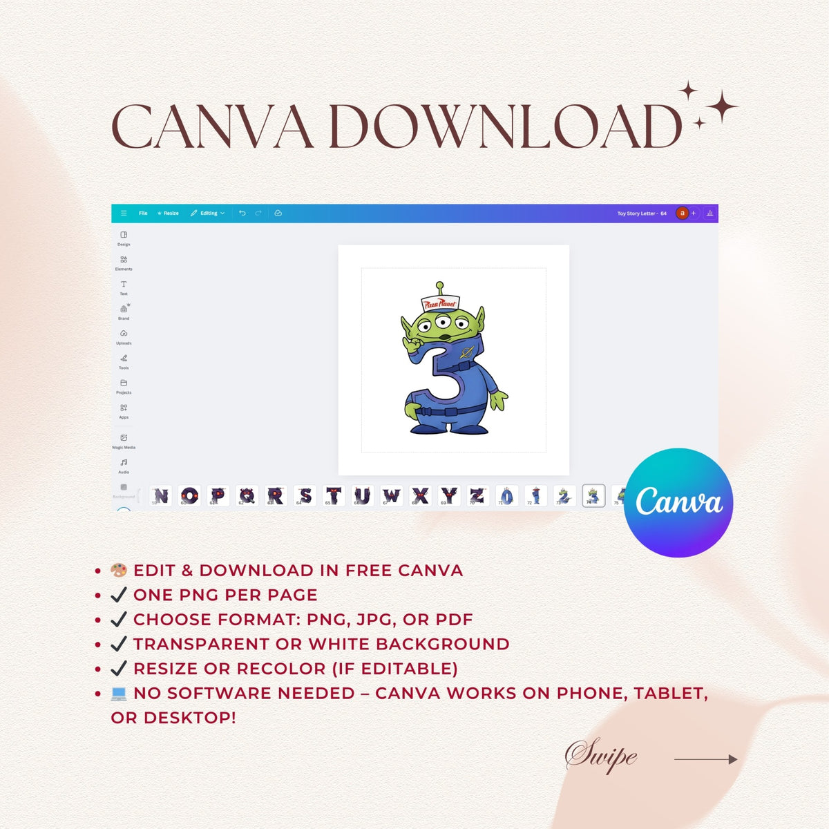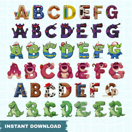 This massive digital collection is packed with over 100 high-quality designs, including a full alphabet and numbers set designed to look like your favorite Toy Story characters. Perfect for creating custom names, phrases, and birthday signs, this bundle is a must-have for any Toy Story fan.