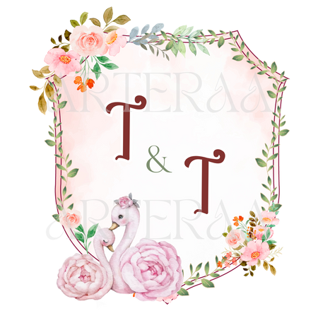Floral Swan Monogram – Gentle pastel pinks, floral frame, and a pair of swans for an elegant romantic vibe.