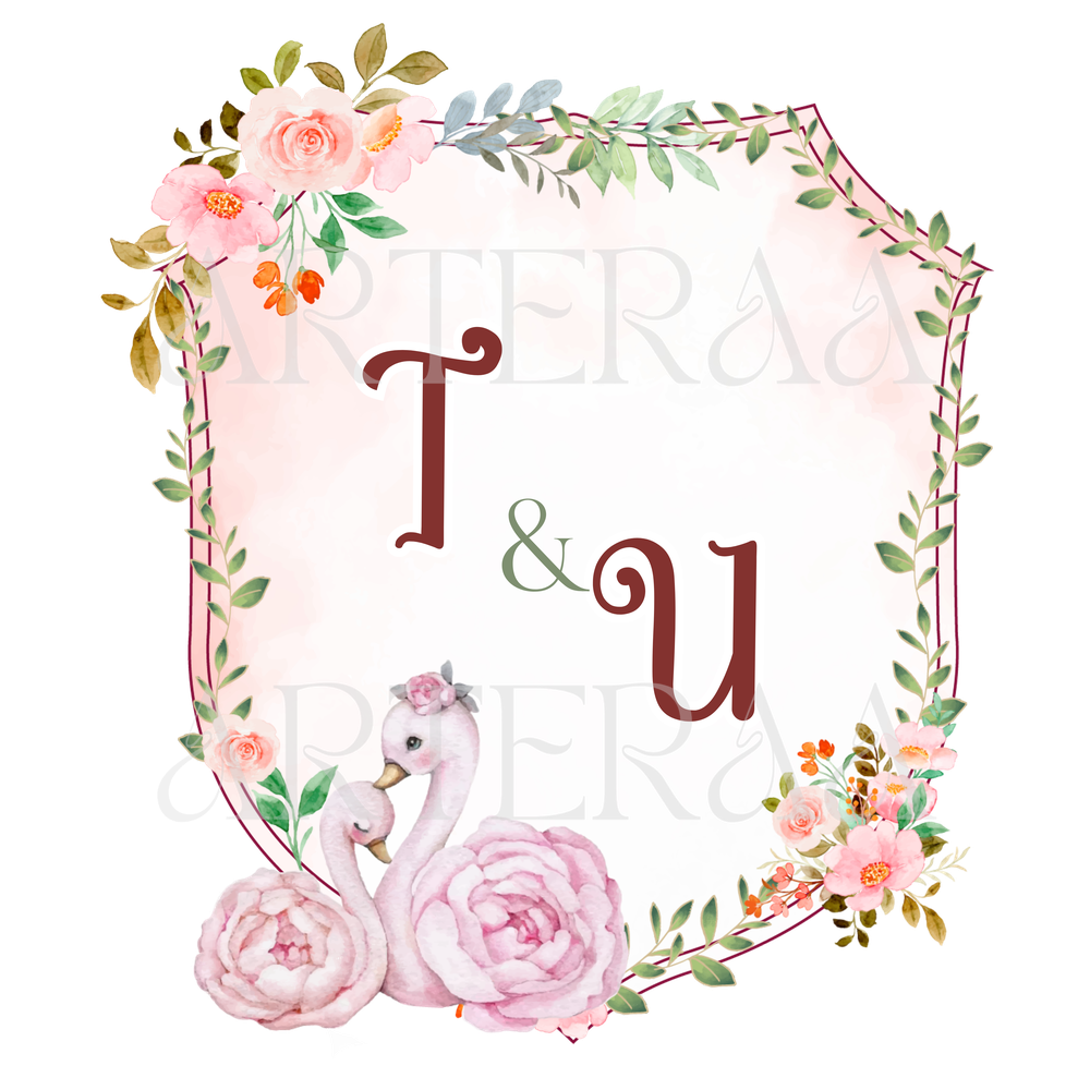 A: You will receive 5 high-resolution PNG files with transparent backgrounds featuring the selected couple initials (e.g., TU). The files are ready to use in digital or printed wedding materials.