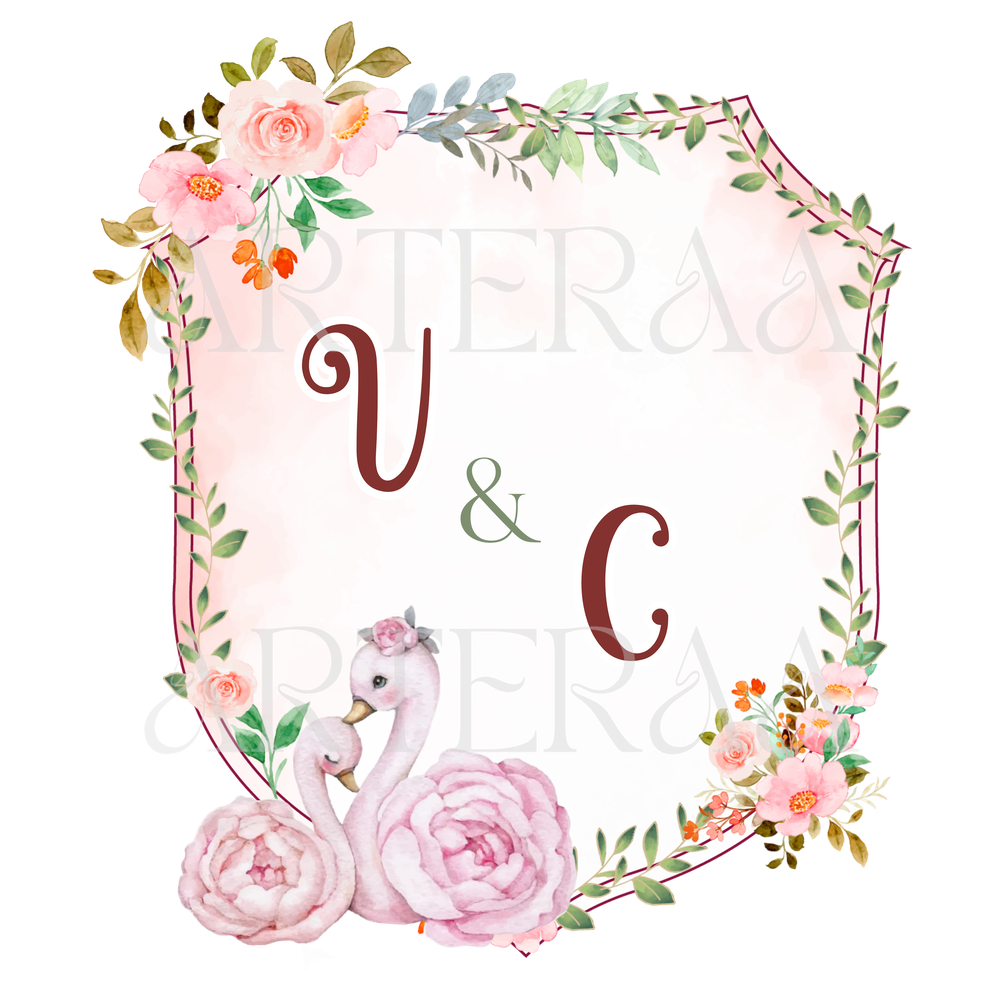 Floral Swan Monogram – Gentle pastel pinks, floral frame, and a pair of swans for an elegant romantic vibe.