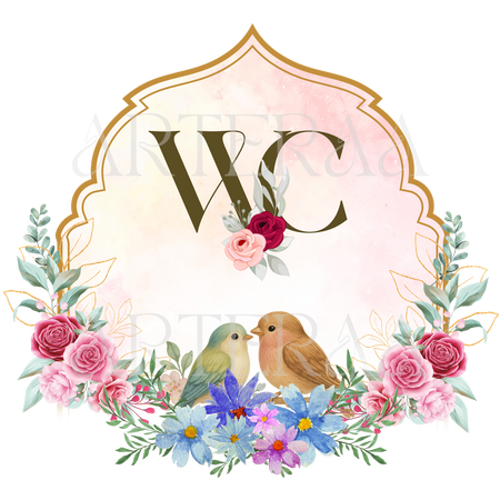A: You will receive 5 high-resolution PNG files with transparent backgrounds featuring the selected couple initials (e.g., WC). The files are ready to use in digital or printed wedding materials.