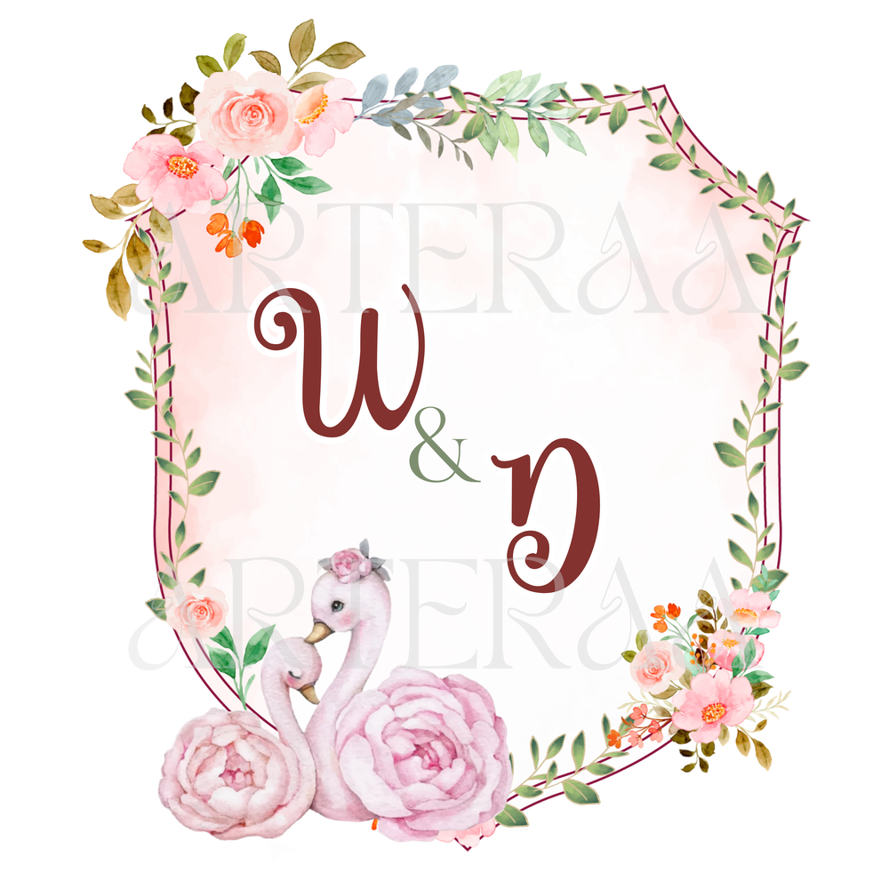 Floral Swan Monogram – Gentle pastel pinks, floral frame, and a pair of swans for an elegant romantic vibe.