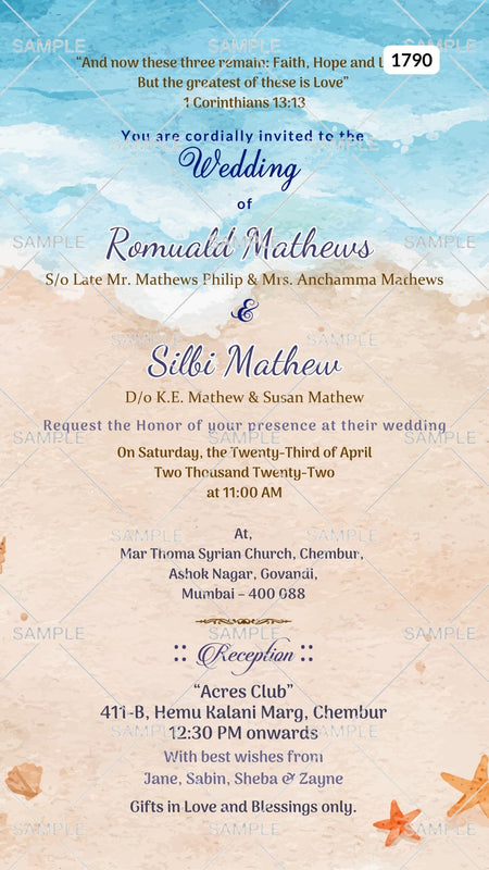 Wedding ceremony invitation card Canva Editable Template of hindu maharashtrian marathi family in english language with beach theme design 1790