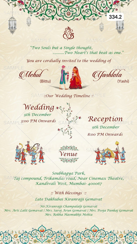 Wedding ceremony invitation card Canva Editable Template of hindu maharashtrian marathi family in english language with Mandala theme design 334