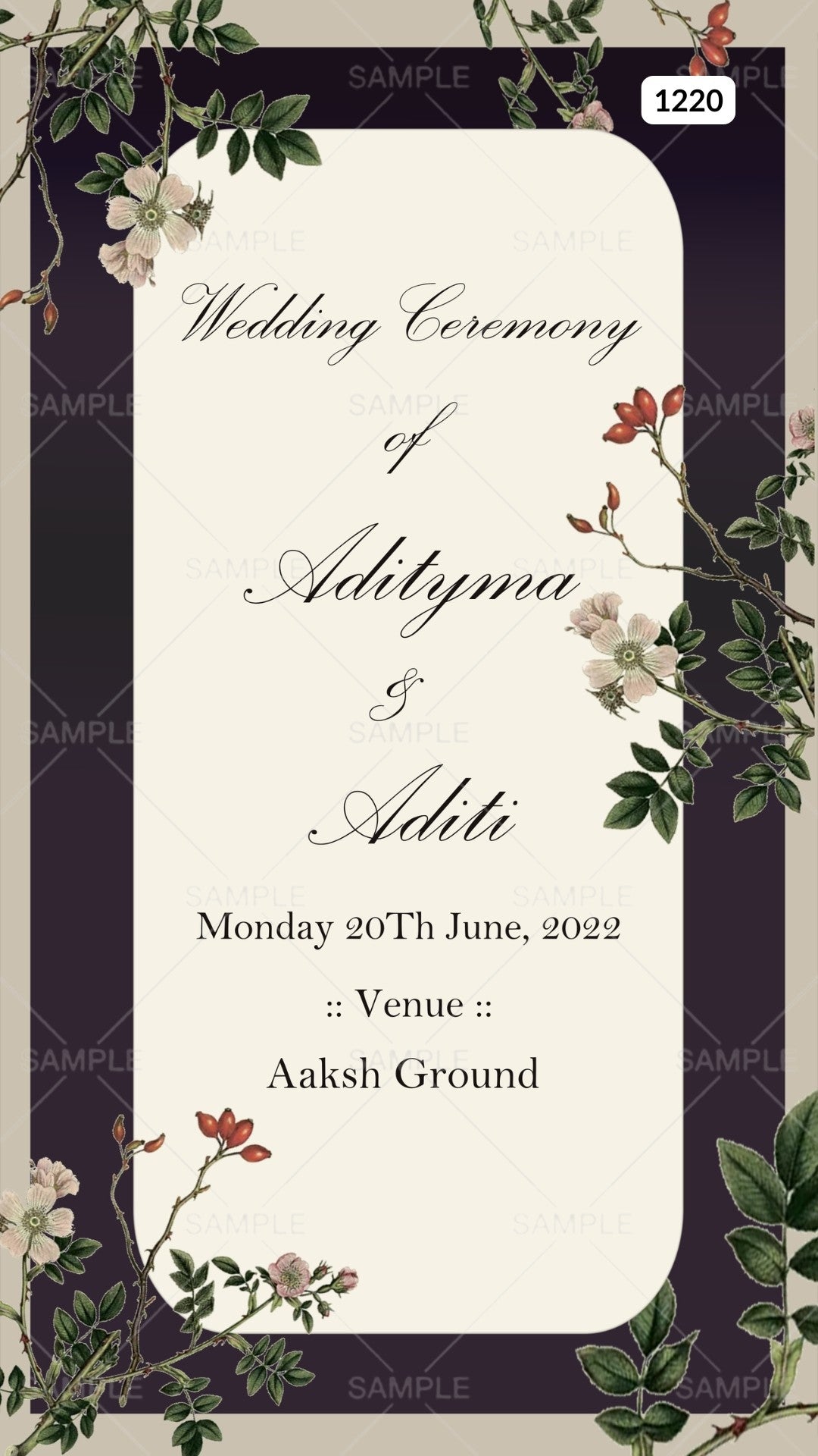Wedding ceremony invitation card Canva Editable Template of hindu modern family in english language with Vintage flower theme Canva Editable Template design 1220