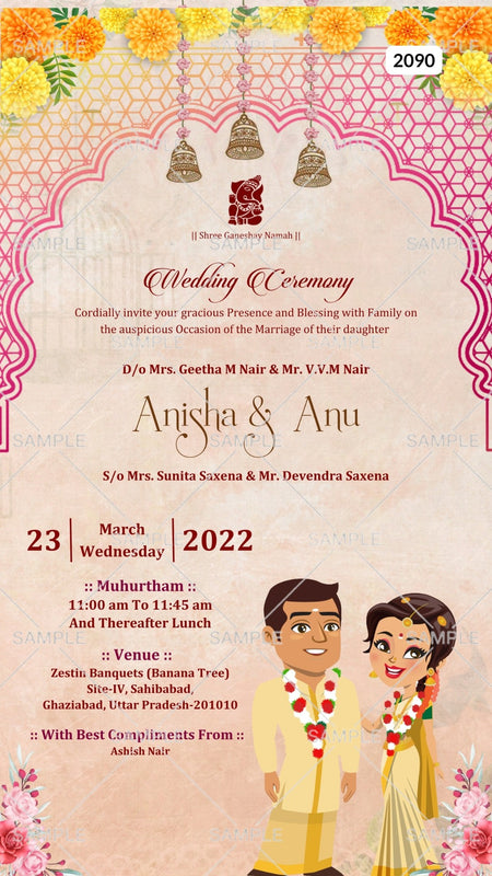 Wedding ceremony invitation card Canva Editable Template of hindu north indian bhojpuri family in english language with gate theme design 2090