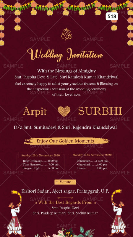 Wedding ceremony invitation card Canva Editable Template of hindu north indian bhojpuri family in english language with Minimalistic theme design 518