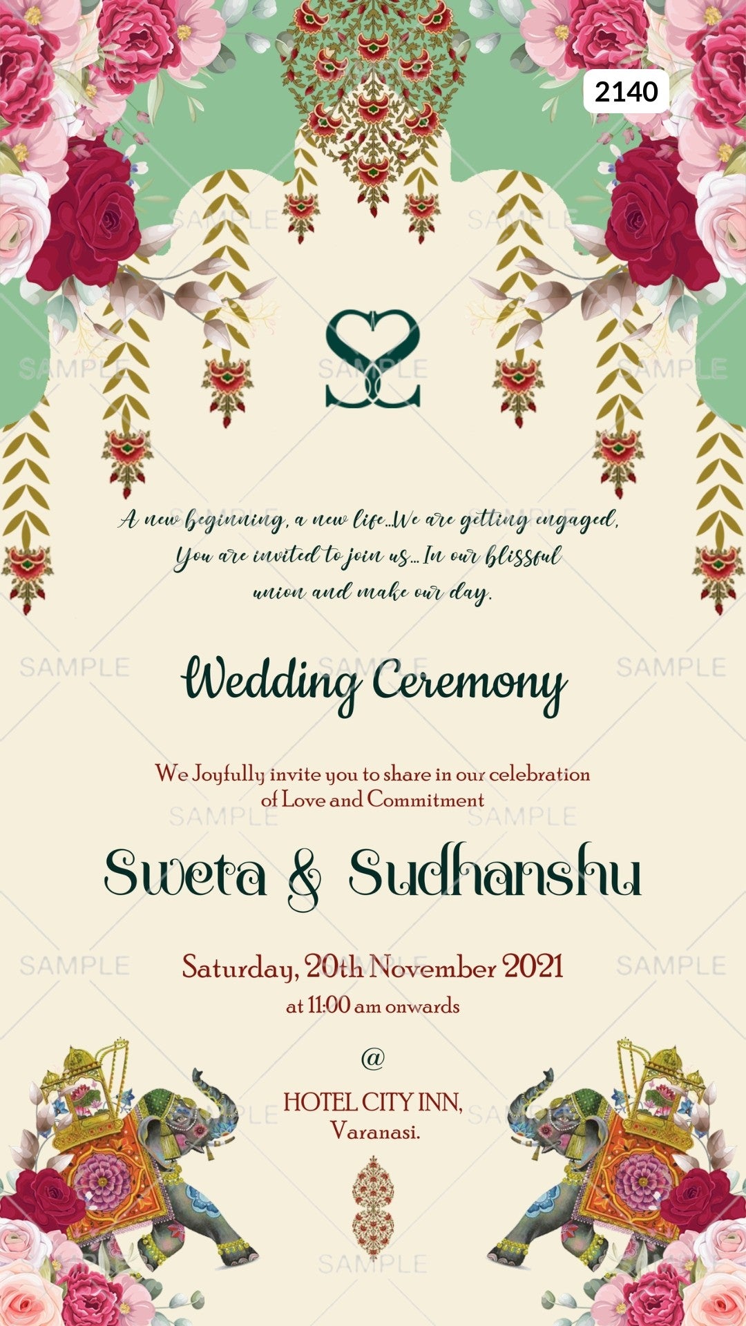 Wedding ceremony invitation card Canva Editable Template of hindu punjabi sikh family in English language with floral theme design 2140