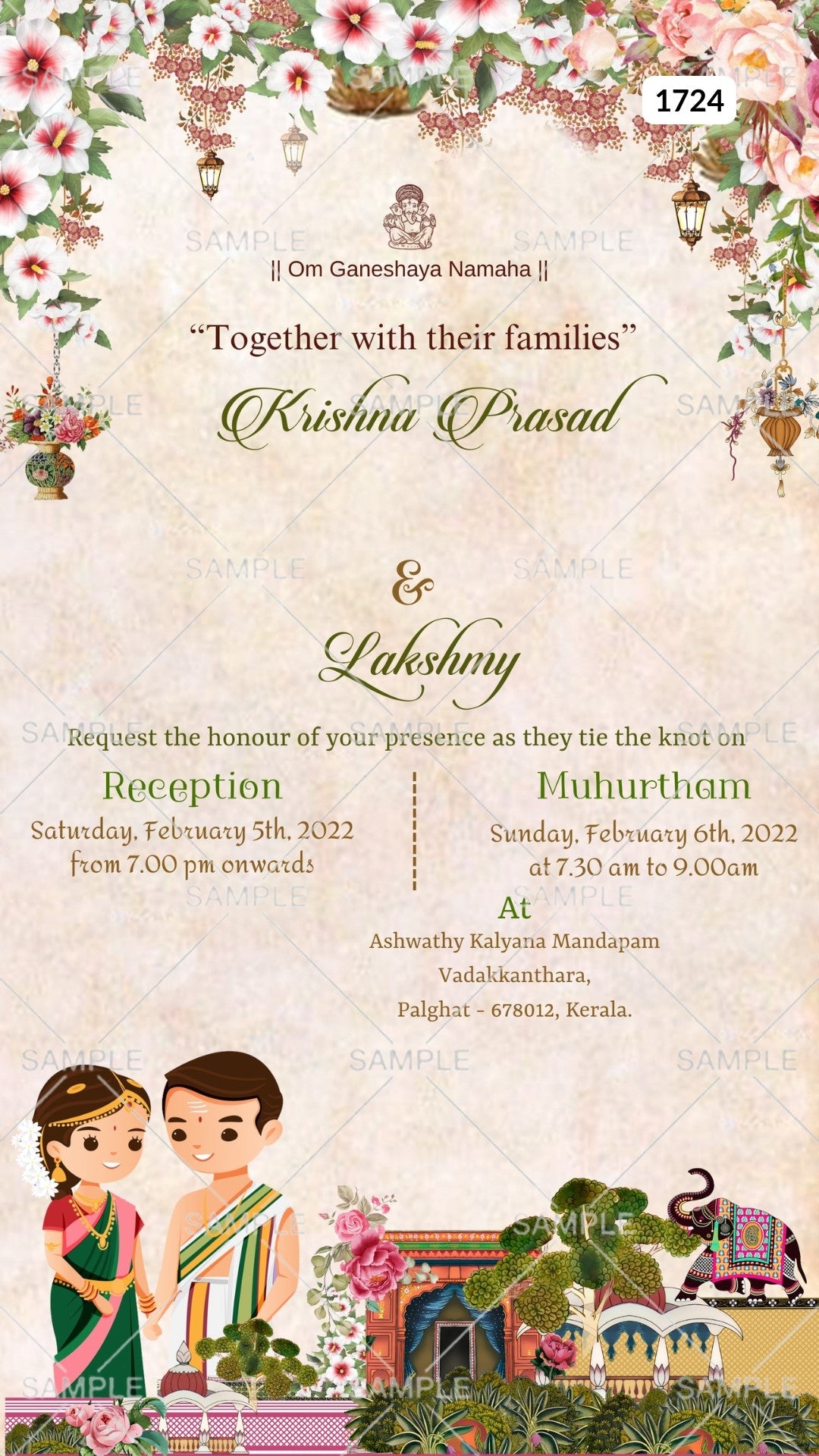 Wedding ceremony invitation card Canva Editable Template of hindu south indian malayali family in english language with traditional theme design 1724